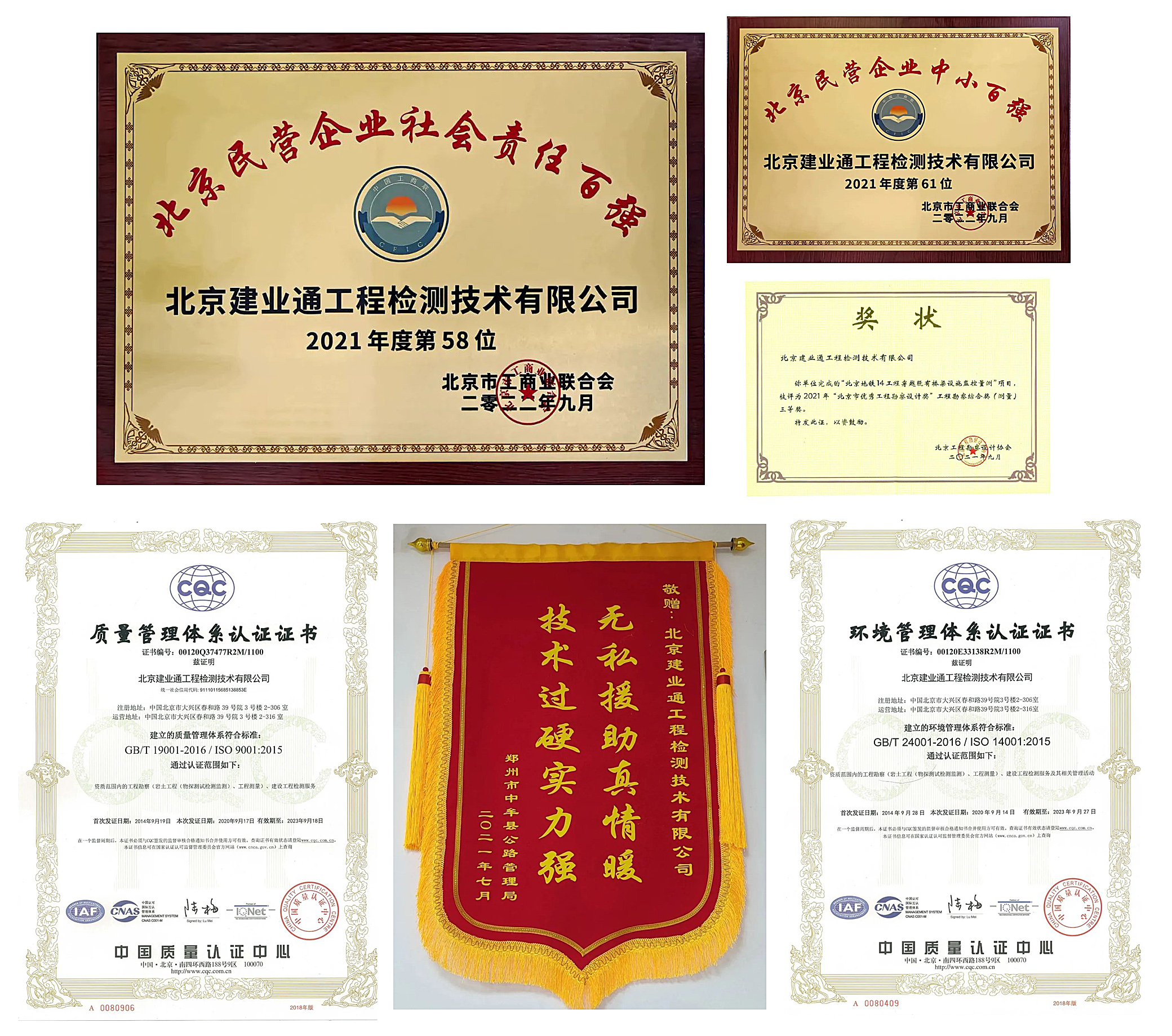 同時(shí),憑借較高的行業(yè)專(zhuān)注度、豐富的科技創(chuàng)新成果、穩(wěn)扎穩(wěn)打的科研能力以及積極履行社會(huì)責(zé)任,北京建業(yè)通在企業(yè)高質(zhì)量發(fā)展方面也取得了諸多成績(jī),榮獲了"北京民營(yíng)企業(yè)中小百?gòu)?qiáng)""北京民營(yíng)企業(yè)社會(huì)責(zé)任百?gòu)?qiáng)""北京市共鑄誠(chéng)信企業(yè)"等榮譽(yù),連續(xù)多年被評(píng)為北京市軌道交通工程質(zhì)量檢測(cè)履約先進(jìn)單位、連續(xù)多年獲得北京市城市道路養(yǎng)護(hù)管理中心第三方監(jiān)測(cè)單位評(píng)比第一名的好成績(jī)。