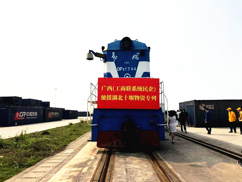 3月10日下午,滿載著廣西壯族自治區(qū)工商聯(lián)系統(tǒng)民營企業(yè)愛心的廣西支援湖北物資直達(dá)冷鏈專列從南寧鐵路國際港出發(fā),直發(fā)對口支援湖北十堰市。這是廣西開出的第十二班支援湖北物資直達(dá)冷鏈專列,也是第五班對口支援湖北十堰市的專列。此班專列是廣西工商聯(lián)系統(tǒng)民營企業(yè)對口支援十堰的專列,所載物資包括生活物資和醫(yī)療防護(hù)物資,均由廣西區(qū)工商聯(lián)組織全區(qū)工商聯(lián)系統(tǒng)、民營企業(yè)家捐贈。廣西壯族自治區(qū)政協(xié)副主席、工商聯(lián)主席磨長英,自治區(qū)黨委統(tǒng)戰(zhàn)部副部長、工商聯(lián)黨組書記熊春寒,自治區(qū)商務(wù)廳副廳長粟堅(jiān)以及各愛心民企、商會代表等出席發(fā)車儀式。