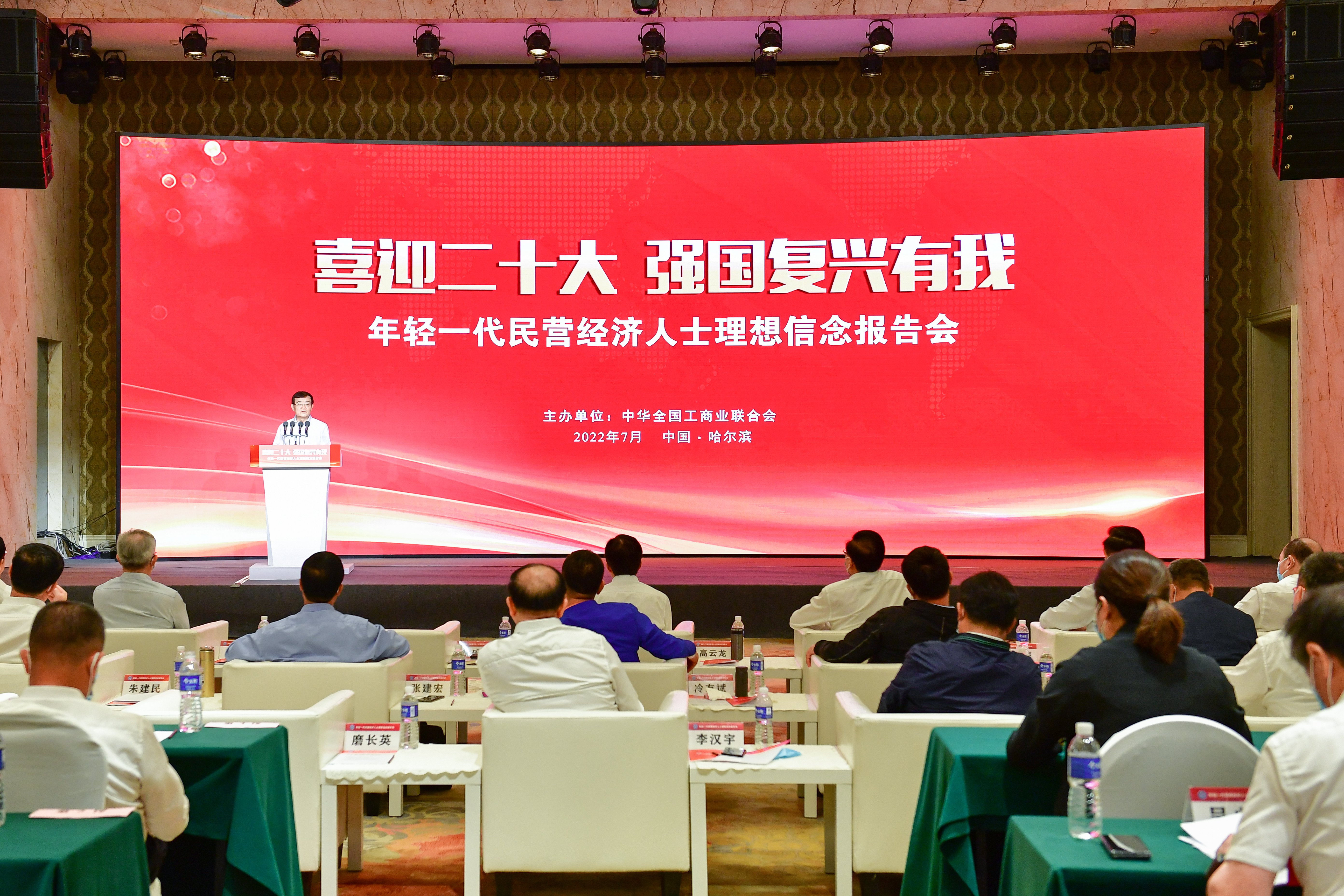 2022年7月3日,全國工商聯(lián)以“喜迎二十大強國復興有我”為主題,在哈爾濱舉辦年輕一代民營經(jīng)濟人士理想信念報告會。中央統(tǒng)戰(zhàn)部副部長、全國工商聯(lián)黨組書記徐樂江出席報告會并講話。