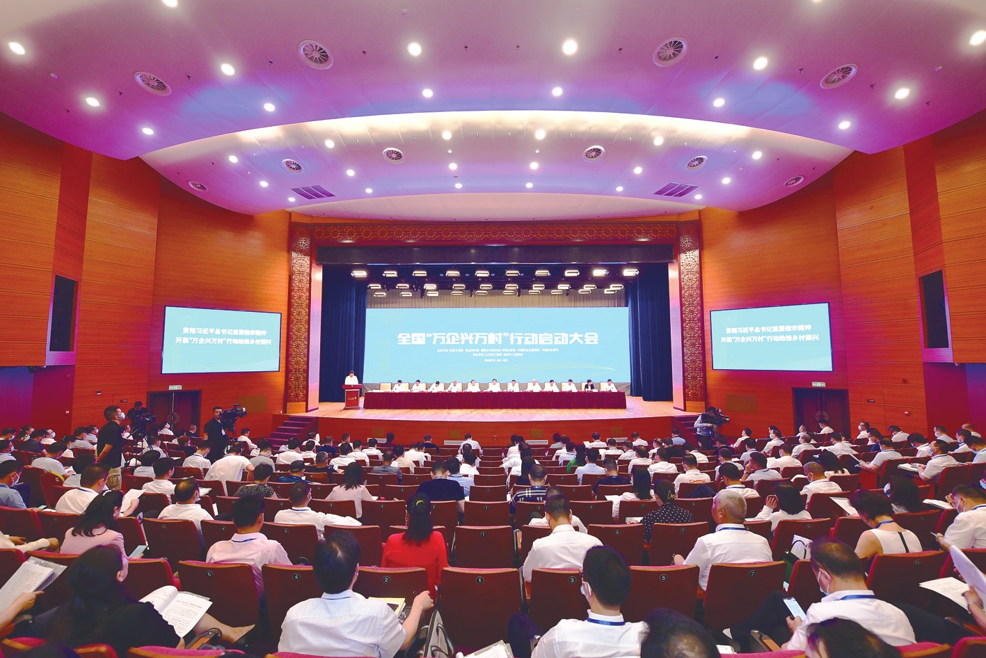 2021年7月16日,全國(guó)工商聯(lián)、農(nóng)業(yè)農(nóng)村部、國(guó)家鄉(xiāng)村振興局、中國(guó)光彩事業(yè)促進(jìn)會(huì)、農(nóng)發(fā)行、農(nóng)行等六單位在山東濰坊共同召開(kāi)全國(guó)“萬(wàn)企興萬(wàn)村”行動(dòng)啟動(dòng)大會(huì)。本報(bào)記者張雷/攝