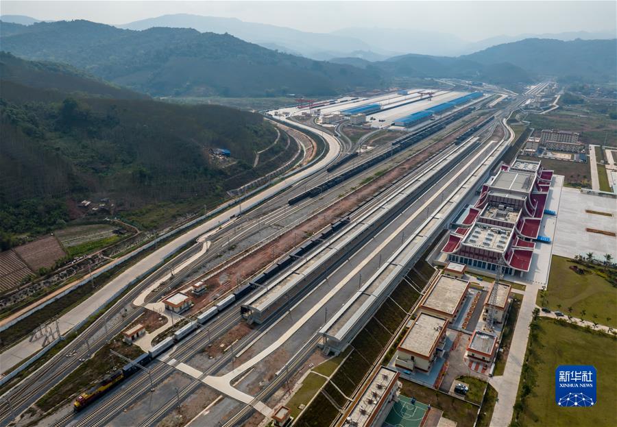 2023年2月22日拍攝的中老鐵路磨憨站(無(wú)人機(jī)照片)。新華社記者 江文耀 攝