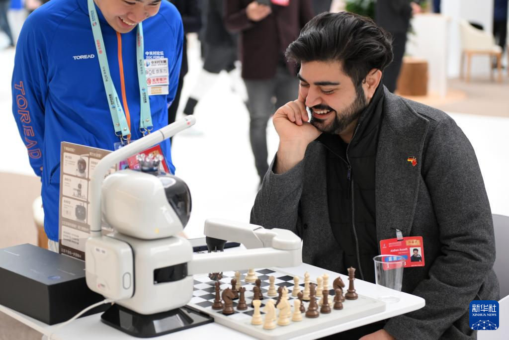 3月27日,與會嘉賓在與一款機器人對弈。新華社記者 張晨霖 攝
