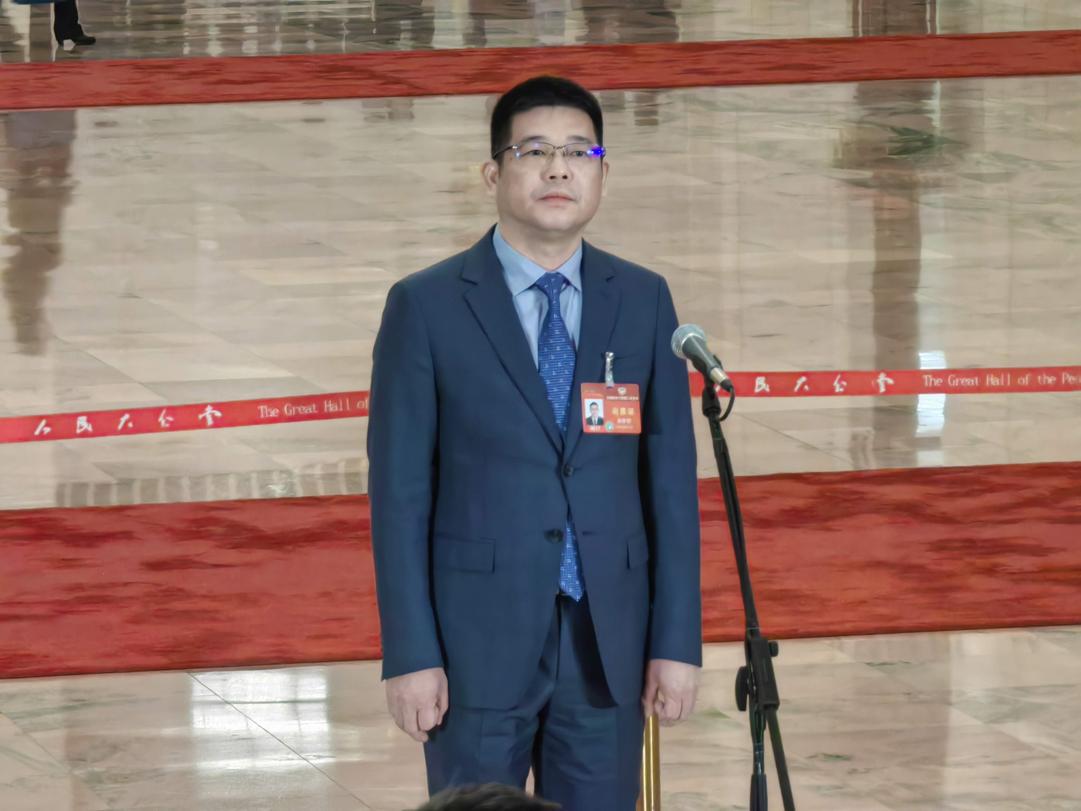 全國政協(xié)十四屆二次會議第三場“委員通道”集體采訪活動在北京人民大會堂舉行。這是全國政協(xié)委員,九牧集團(tuán)黨委書記、董事長林孝發(fā)接受媒體采訪 本報記者 牛暢/攝