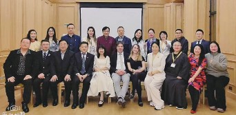 李開勛(左三)與就讀的牛津大學博士后班師生合影。
