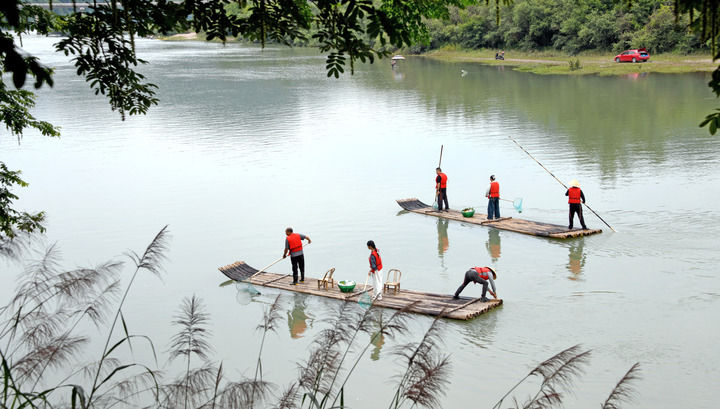 浙江省臺(tái)州市仙居縣步路鄉(xiāng)黨員志愿者與河長(zhǎng)一起在永安溪巡河護(hù)水(2024年6月4日攝)。新華社發(fā)(王華斌攝)