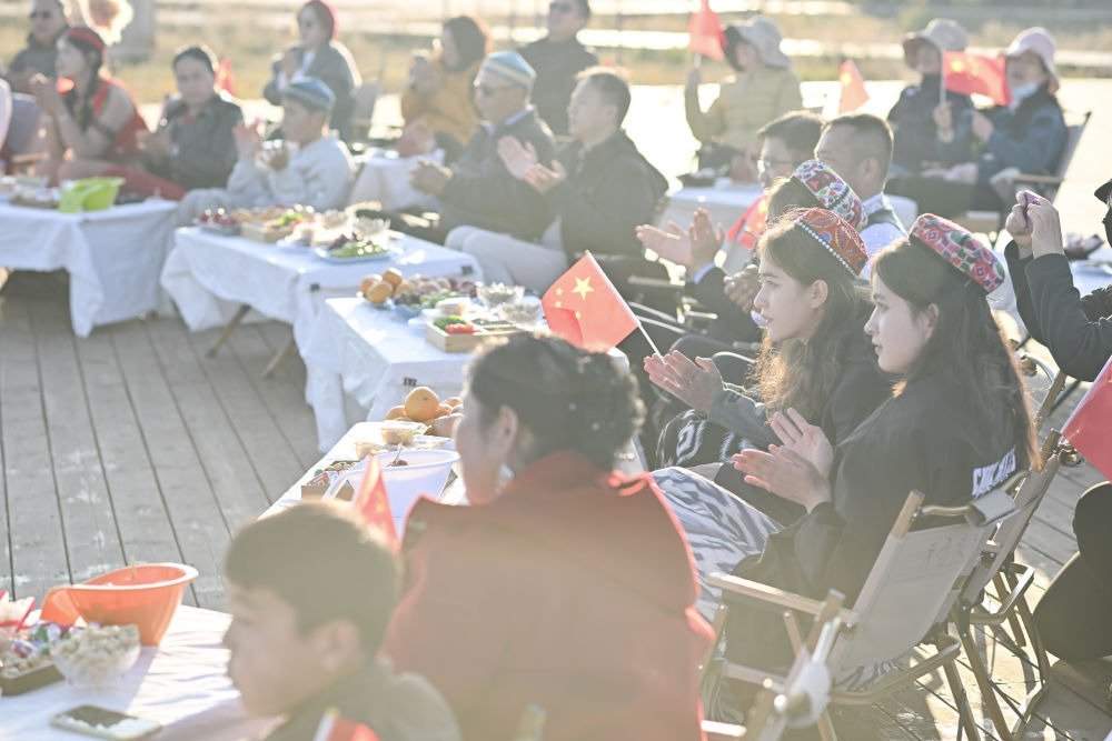江蘇泰州援疆干部人才與昭蘇農(nóng)牧民家庭代表齊聚,觀看節(jié)目(2025年10月6日攝)。新華社記者 胡虎虎 攝