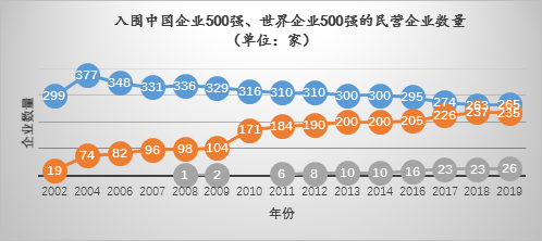 產(chǎn)業(yè)結構優(yōu)化升級是各國競爭與發(fā)展的主題和基礎。從2001年12月中國“入世”、2002年黨的十六大提出“兩個毫不動搖”,到2018-2019年中美爆發(fā)貿(mào)易摩擦、5G技術進入商用階段,是中國經(jīng)濟完成“重化工業(yè)”走向“高工業(yè)化”并趕超歐美國家的關鍵階段,也是民營經(jīng)濟產(chǎn)業(yè)轉型的攻堅時期。1995年《財富》雜志推出世界企業(yè)500強,2002年中企聯(lián)首次發(fā)布中國企業(yè)500強,2003年全國工商聯(lián)推出民營企業(yè)500強。分析比較民企500強的發(fā)展特征、短板難題和成長韌性,從企業(yè)微觀變量的角度尋找發(fā)展的目標和路徑,是當下民企走向高質(zhì)量發(fā)展的必需之策。