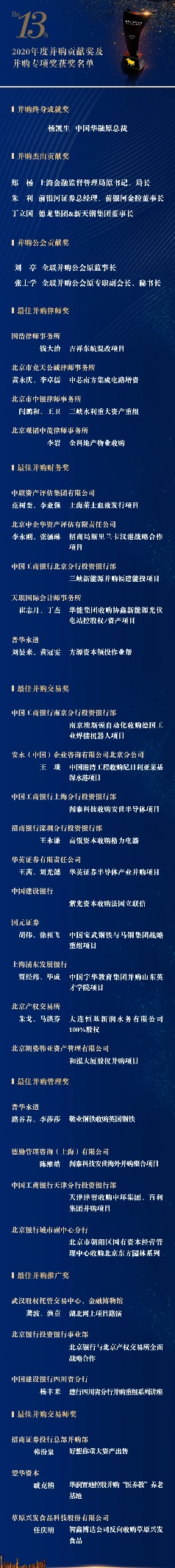 并購(gòu)杰出貢獻(xiàn)獎(jiǎng)
