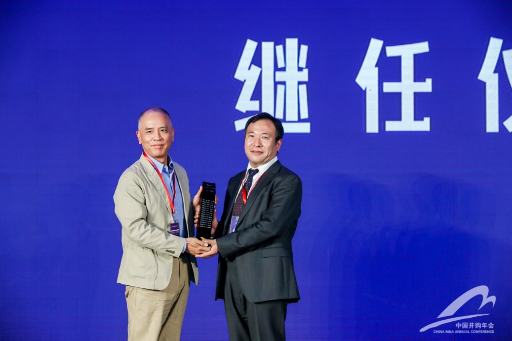 經(jīng)過(guò)并購(gòu)公會(huì)理事會(huì)一致通過(guò),中國(guó)工商銀行正式繼任并購(gòu)公會(huì)第十二任輪值主席單位。在出席活動(dòng)的領(lǐng)導(dǎo)們的共同見(jiàn)證下,中國(guó)工商銀行代表——中國(guó)工商銀行投資銀行部副總經(jīng)理程斌宏從全聯(lián)并購(gòu)公會(huì)監(jiān)事長(zhǎng)景柱手中接過(guò)輪值主席碑。