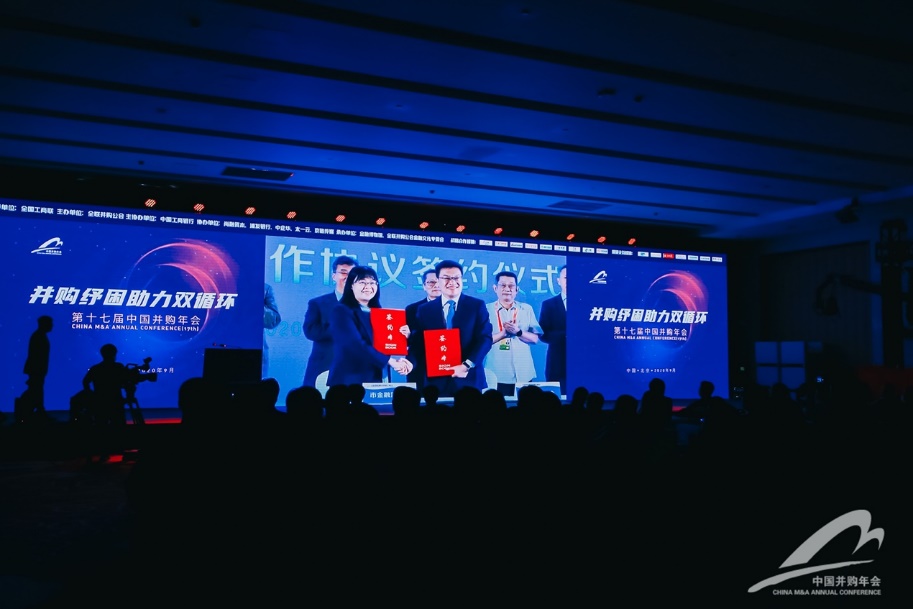 年會(huì)召開前夕,2020年9月9日,北京市地方金融監(jiān)督管理局與全聯(lián)并購(gòu)公會(huì)戰(zhàn)略合作協(xié)議簽約儀式在服貿(mào)會(huì)成果發(fā)布現(xiàn)場(chǎng)隆重舉行。北京市地方金融監(jiān)督管理局黨組成員、副局長(zhǎng)王穎與全聯(lián)并購(gòu)公會(huì)會(huì)長(zhǎng)尉立東作為雙方代表簽署了戰(zhàn)略合作協(xié)議。北京市地方金融監(jiān)督管理局黨組書記、局長(zhǎng)霍學(xué)文,全聯(lián)并購(gòu)公會(huì)創(chuàng)始會(huì)長(zhǎng)王巍,顧問(wèn)劉紅路,顧問(wèn)葛明,常務(wù)副會(huì)長(zhǎng)鄭建彪,常務(wù)副書記李聚合,副會(huì)長(zhǎng)崔利國(guó),秘書長(zhǎng)顧寧珂,監(jiān)事漁童等領(lǐng)導(dǎo)共同見(jiàn)證了簽約儀式。簽署戰(zhàn)略合作協(xié)議也成為中國(guó)服貿(mào)會(huì)金融服務(wù)領(lǐng)域合作的重要成果之一。